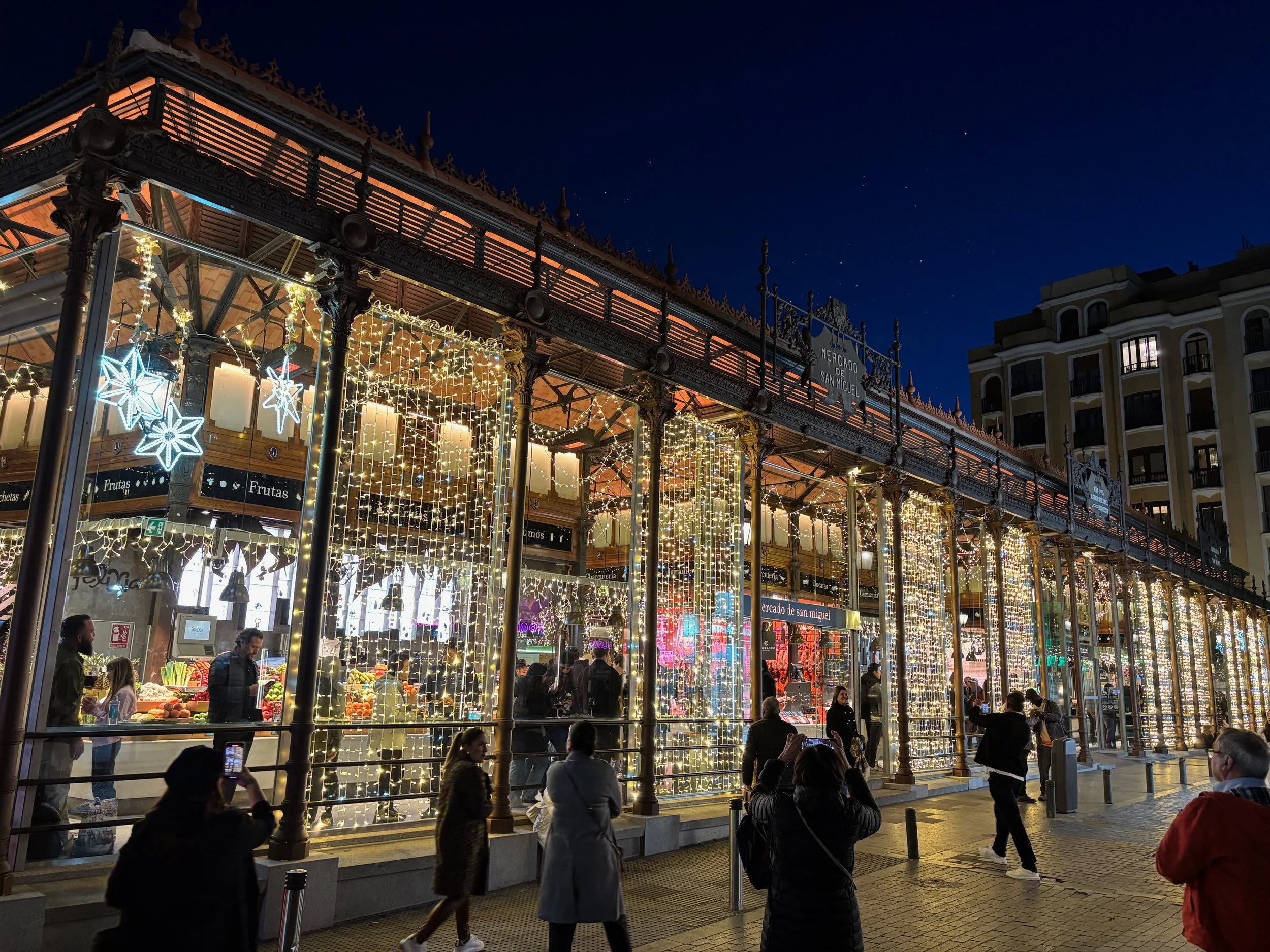 Because the San Miguel Market is one of the most famous sites in Madrid, it can be packed at all hours of the day. It opens everyday at 10:00 am and serves food and drinks all day until long after sunset. The doors close at midnight during the week at 1:00 am on Friday and Saturday nights.