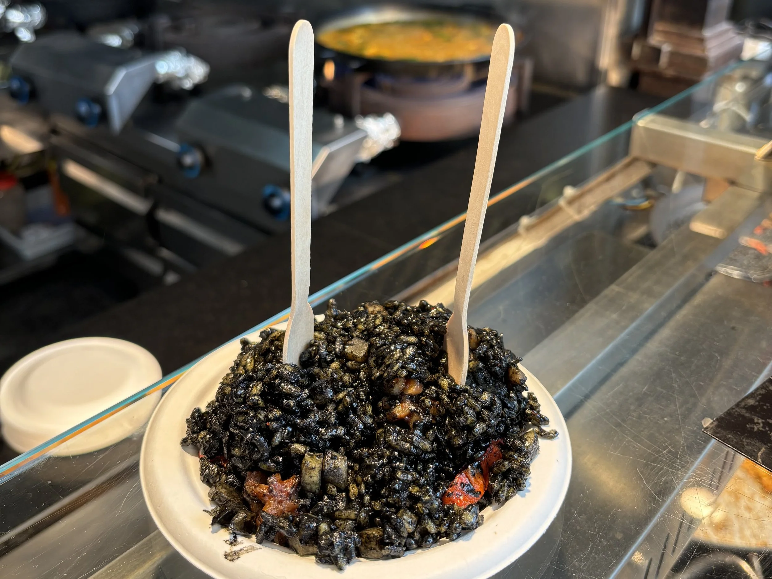 The arroz negro from Power Paella in the San Miguel Market is dyed black with squid ink!